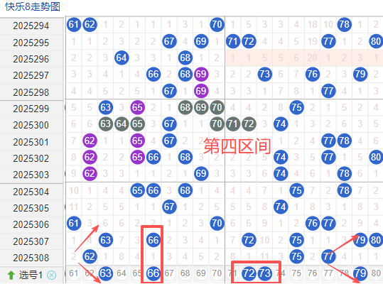 上期四区间开出了3奖号(62.75.77)上期的四区开3个奖号呈现了一个递减的趋势,开出的奖号7头回补2个,6头开也是回补了1个,先来看号码63在近 30 期内属于不是很稳定的号码,近期出现频率相对还是比较温热的,偶尔会间隔多期后出现一次,这个号码要注意防守,号码66具有一定的间歇性活跃度较热比如有时会间隔 3到4期就再次出现,也有时会间隔多期,近期整体出现频率比较热,近期还是要关注的.号码72活跃度近期比较温热,有一定的间歇性。活跃度近期还算稳定,整体走势有一定的波动性.