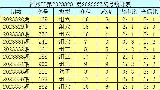 开奖回顾:福彩3D第2023337期奖号:862。