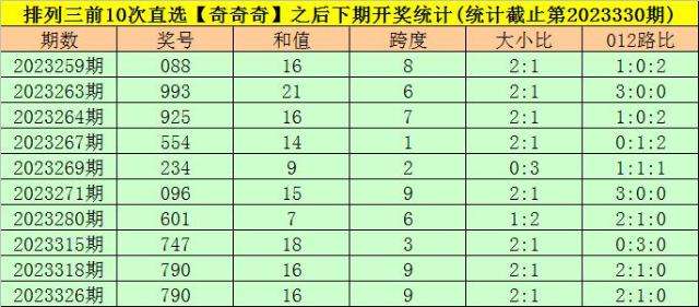 3。在前10次【奇奇奇】类型奖号开出之后,其下期奖号分别开出:088、933、955、544、244、066、611、777、700、700;