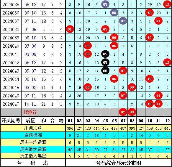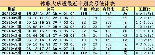 上期开奖:大乐透第2024047期奖号为:11 19 21 26 35 + 10 11,前区号码和值为112,跨度为24,奇偶比为4:1,无重号,五区比为0:1:2:1:1。