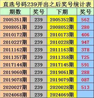 排列三直选239出现之后下期奖号分别为:562-280-406-947-378-725-591-288-087-513。