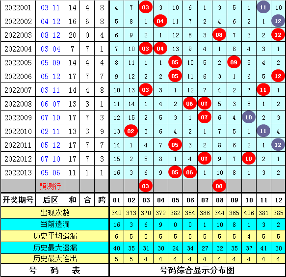 第七位:上期开出奖号06,前10次该位开出号码06之后,其下期分别开出奖号:09-05-12-12-09-03-11-06-05-11,其中号码质合比为5:5,奇偶比为7:3,大小比为6:4,012路比为6:0:4,本期第七位参考2路号码,精选胆码08。