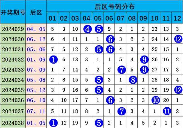前一区(01-12):最近10期共开出15个号码,出号较冷,该区奖号本期关注:02、08。