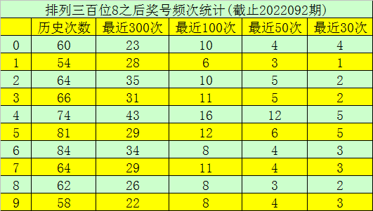 在以上统计中奖,直选022组合之后,下期奖号百位开出号码:134789,未开出号码0256,其中百位号码012路比为6:3:1,大小比为5:5,奇偶比为8:2,本期预计百位出现奇数号码,精选一码5。