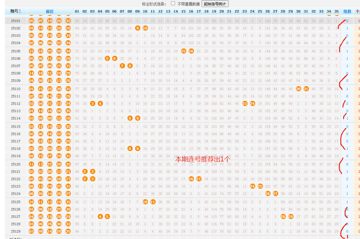 3、本期数据分析龙头凤尾、断字头、断区、前后区不出号、后区组合、龙凤组合、尾数分析、跨度组合分析等(会员解锁)