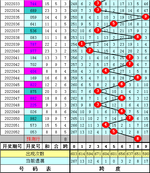结合其它参数来看,福彩3D第2022053两码关注03、08重点关注03,独胆看好0。
