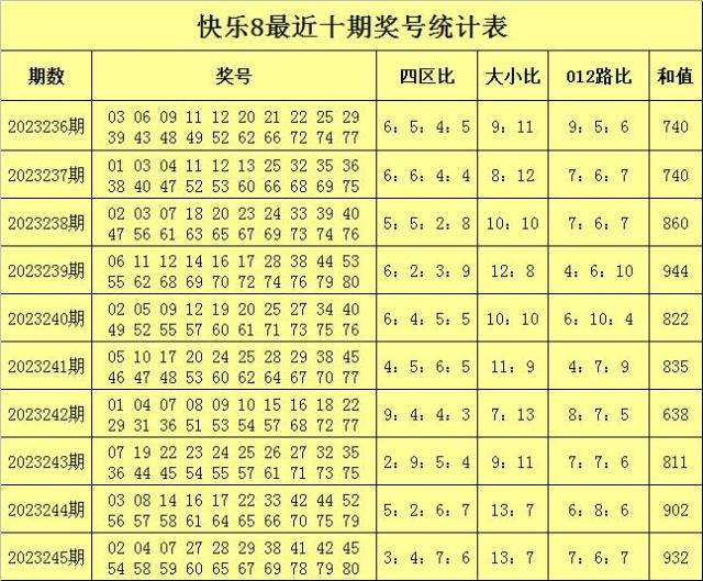 福彩快乐8第2023245期开奖回顾:02 04 07 27 28 29 38 41 42 45 54 58 59 60 65 67 69 78 79 80,其中奖号四区比为3:4:7:6。