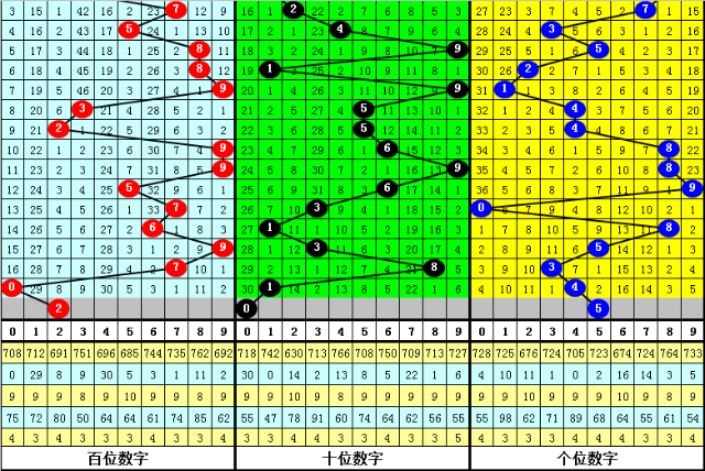 百位:2022069期-2022073期出号:76970,振幅为9点,分布比较分散,本期预计百位走大,参考2。