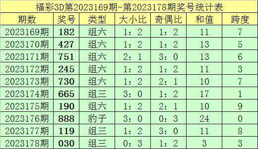 其中大小比0:3,奇偶比1:2,和值3,跨度3。