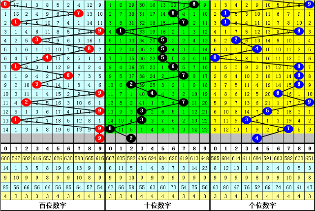 从以上统计可以看出,百十位两码合差9与9同时出现之后其下期两码合差表现最热的4个分别为:1235,本期百十位两码合差可以参考这四码中的数据。