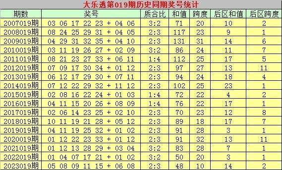 大乐透历史同期第2024019期奖号分析:
