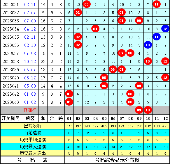 后区分析:最近10周星期六后区号码奇偶比为12:8,奇数号码走势较热,号码大小比为12:8,大号相对活跃,本期后区精选两码09和10。