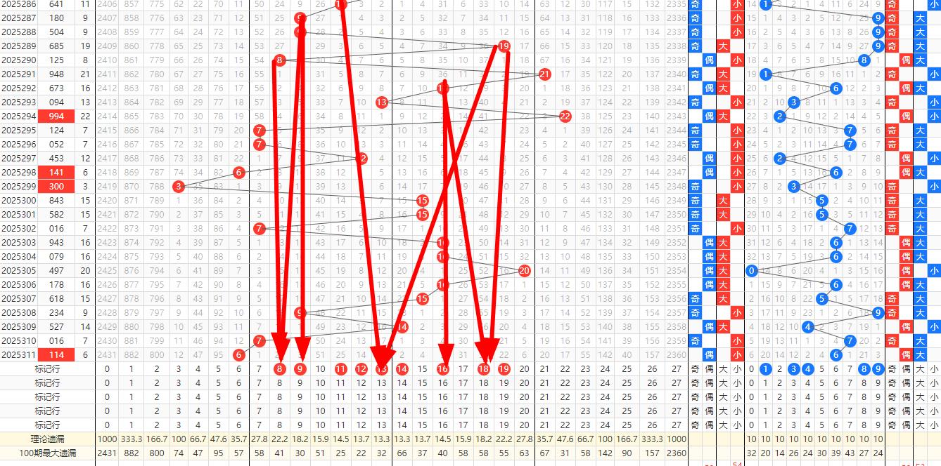 奇偶比例预判 在奇偶比例方面,第311期开出了114奇奇偶的组合,显示出奇数号码的强势。然而,根据奇偶比例的自然平衡原理,偶数号码在第312期有望得到更多的关注。因此,312期的奇偶比例可能为1:2,即偶数号码占据多数。这种预判基于对历史数据的深入分析,以及对奇偶比例波动规律的把握。奇偶比例为1:2;近十期奇偶比为16:14.关注两偶一奇号码