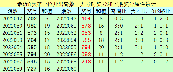 其中大小比2:1,奇偶比2:1,和值16,跨度5。
