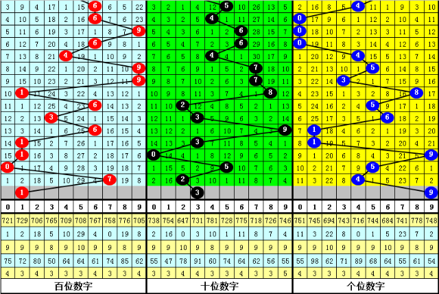 百位分析:该位最近10期开出了6个0路号码、4个1路号码、2路号码全部轮空,0路号码热出,2路号码走冷。本期排除2路号码,参考号码:1。