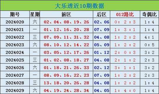 大乐透第2024029期开出奖号:04 19 24 28 34+04 05;其中前区012路比为1:4:0,奇偶比为1:4。