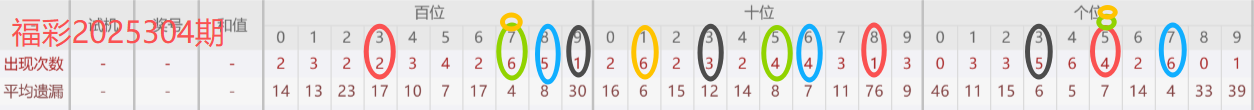 2025300期开奖号码867,我们可以看出近30期百位8出现5次,十位6出现4次(较302期减一),个位7出现6次(较301期减2)。