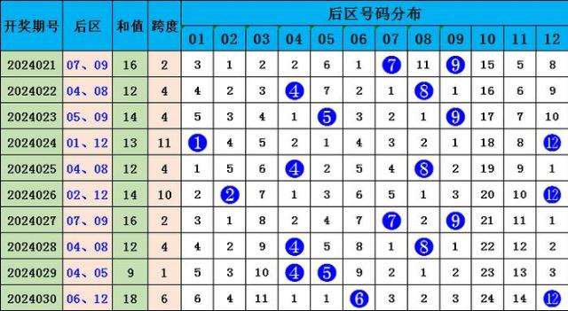上期后区奖号06 12为小大、偶偶组合,最近5期后区号码奇偶比为3:7,奇偶号码偶数热出,大小比为5:5,大小号均衡开出。本期后区推荐小大、偶奇组合,推荐02 09。