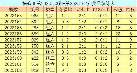 郑飞福彩3D第2023173期推荐: