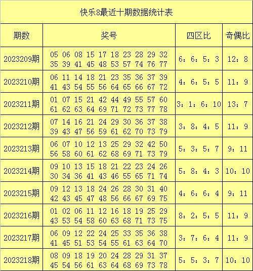 快乐8第2023218期开出奖号:08 09 18 19 20 24 28 29 31 37 45 54 56 61 63 64 68 69 73 78,其中奖号和值为854,跨度为70,012路比为8:7:5,四区比为5:5:3:7,奇偶比为10:10。