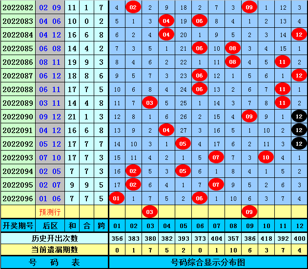 后区分析:在第097期历史同期开奖中,后区奖号奇偶比为11:17,最近5年同期后区奇偶走势为:一奇一偶、一奇一偶、全偶、全偶、一奇一偶,今年同期看好奇数号码大热,参考号码03、09。