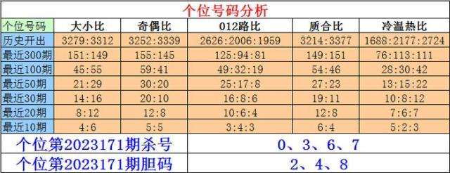 排列三个位第2023171期杀号:0、3、6、7