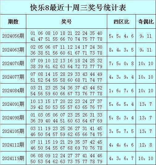 石龙仔周三快乐8四区号码奇偶分析