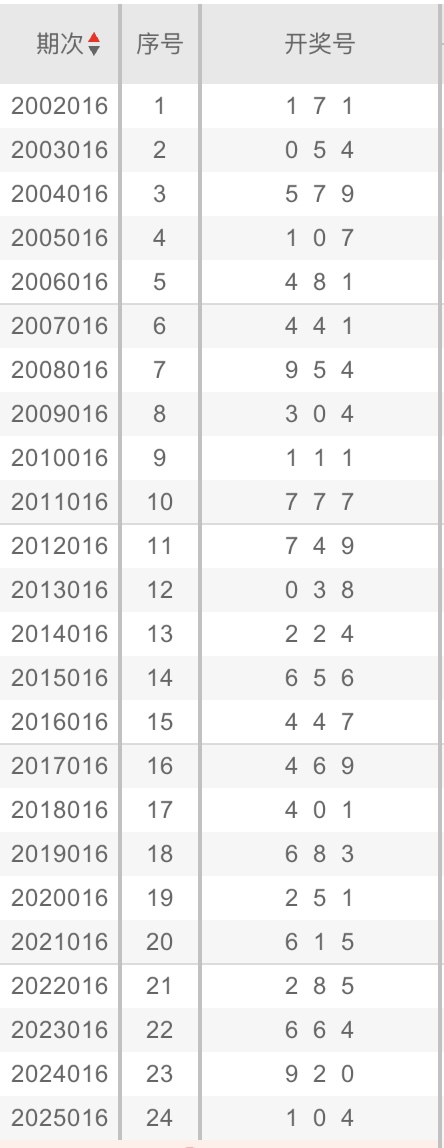 言归正传,分享第一个数据分析:统计历史同期开奖号码,依据追热不追冷的规律,出现次数最多的数字,大概率可以追热。以彩虹APP查询的历史同期开奖号码为例: