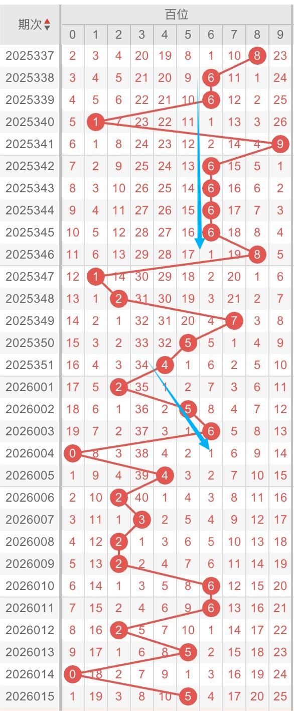 以近30期百位的走势形态分析:斜连和重复两种形态交替出现。例如:数字4-5-6斜连开出,数字6/2重复开出。本期重点关注:数字6-5-4斜连形态,同时关注数字6可能重开。个人分析,仅供参考。