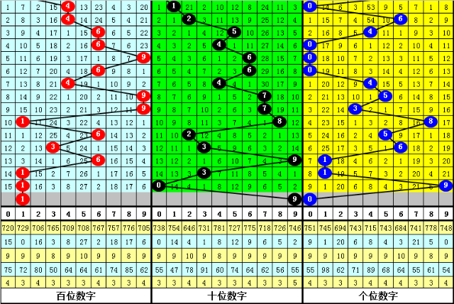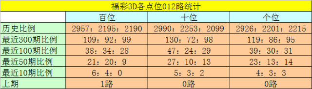 百位分析:该位最近10期开出了6个0路号码、4个1路号码、2路号码全部轮空,0路号码热出,2路号码走冷。本期排除2路号码,参考号码:1。