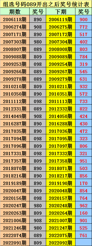 组选089之后,0-9号码分别开出: