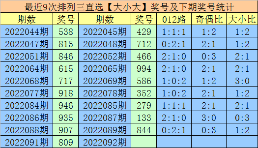 上期回顾:排列三第2022091期开奖号码为809,历史上组选出现31次,直选出现7次。