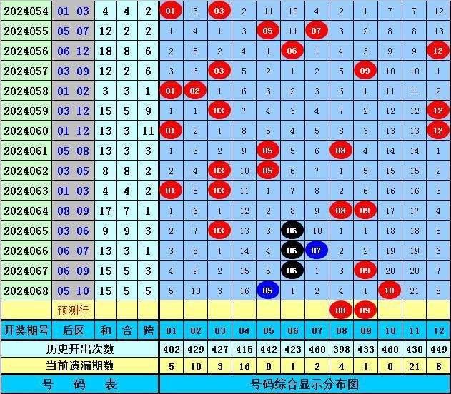后区分析(定义:01-04为一区,05-08为二区,09-12为三区):上期后区开出奖号05和10,分别出现在第二区和第三区和区,最近10期后区三个区间落号个数比为6:9:5,本期后区注意第二区和第三区号码出现,关注两码08、09。