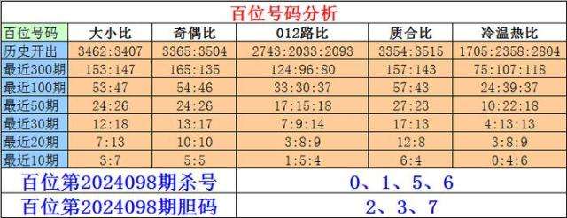 排列三个位第2024098期杀号:2、3、5、6