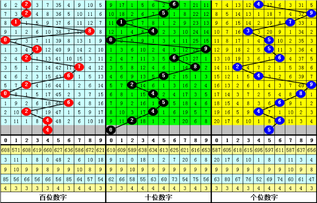在以上奖号中,下期开奖百位号码统计:奇偶分布分别为:偶-偶-奇-奇-奇-奇-偶-偶-奇-偶,其中奇偶数基本持平,本期百位看好偶数出现;大小分布分别为:小-大-大-小-大-大-小-小-大-大,其中大小号码基本持平,本期百位看好小号开出。百位参考号码:4