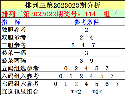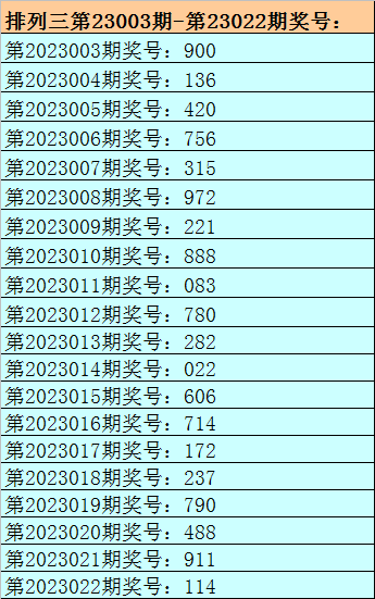 1。排列三最近十期分别开出号码:282-022-606-714-172-237-790-488-911-114,其中有7期奖号开出了上期的重复号码,本期预计第2023022期奖号:114中有重号,参考号码:4。