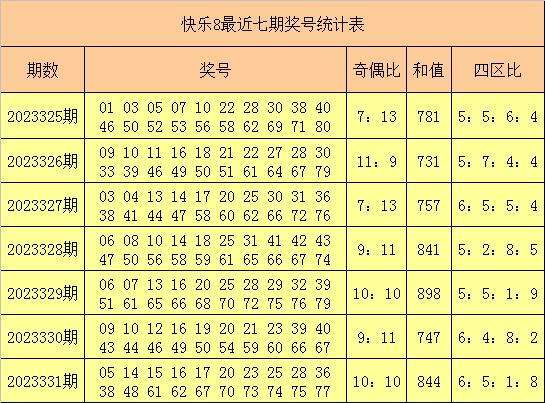福彩快乐8第2023331期开出奖号:05 14 15 16 17 20 23 25 28 36 38 48 61 62 67 70 73 74 75 77,其中奖号奇偶比为10:10,和值为844,四区比为6:5:1:8。