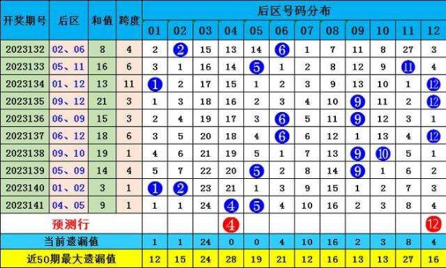 上期后区开出1、2路号码组合:04 05,最近10期后区奖号012路比为10:4:6,本期后区奖号继续关注2路和2路,后区参考:02 08。