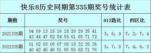 快乐8历史同期第335期012路、四区分析