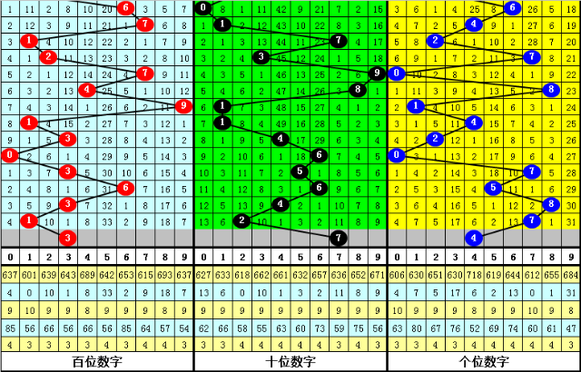 其中,百位奇偶比为4:3,大小比为3:4,本期百位一码参考3。