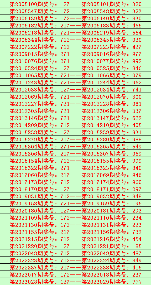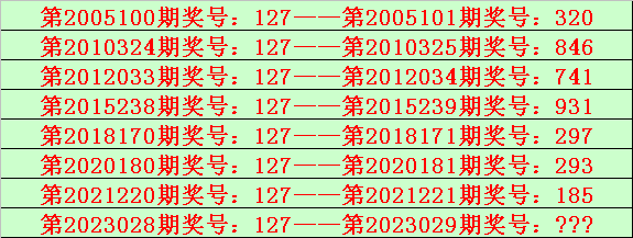排列三第2023028期开出奖号127,该号码直选类型历史上出现了8次,前7次开出之后期下期奖号为:320、846、741、931、297、293、185,见下表:
