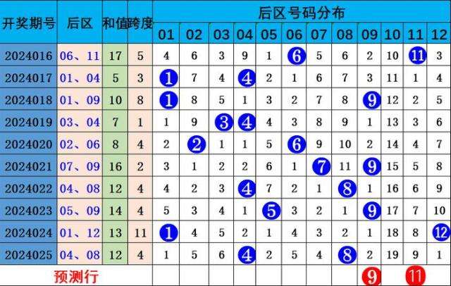 上期开出后区号码:04 08,热热组合。冷热分析:近十期,冷热比6:14,冷号出号较冷,综合分析,本期预测热冷组合后区回补,关注号码01 02 04 09 11。精准推荐:09 11。