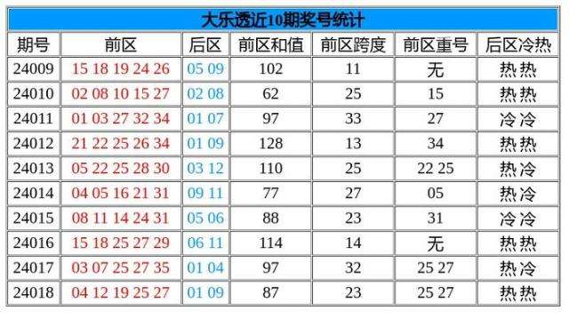 大乐透第24018期奖号开出:04 12 19 25 27 + 01 09,前区和值87,跨度23,重号25、27。后区开出热热组合01 09。