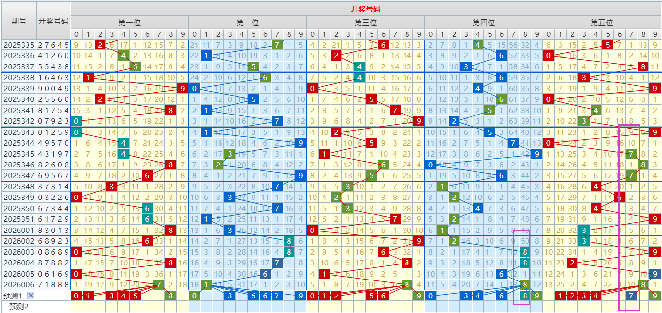 【排列3个位】:个位上期开出号码8,为大偶数,近期开奖号:5-3-2-3-7-0-9-6-8-1-8,近期偶数在本位置表现不错,大数出球高于小数,本期根据走势图及各形态特征分析,推荐号码:012569