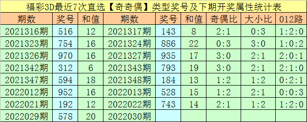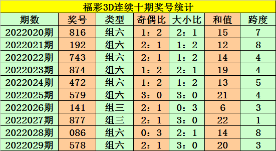 上期回顾:福彩3D第2022029期奖号:578。组六、大大大、奇奇偶。