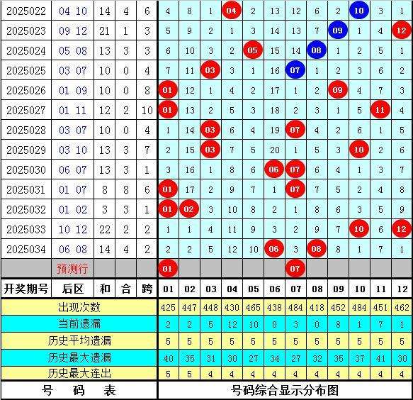 第一区(01-07):最近10周星期三开出了9个奖号,其中号码05出现4次;02出现2次;01、03、07出现1次;号码04、06没有出现;