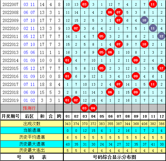 后区号码:上期出现全小组合,本期继续关注全小开出,参考号码:03 04。