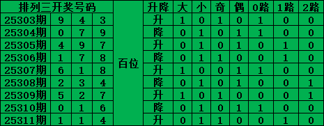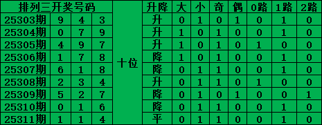 排列三是从0-9每期开出3个号码,截至2025311期三个位置最大遗漏的是39期十位的6号。