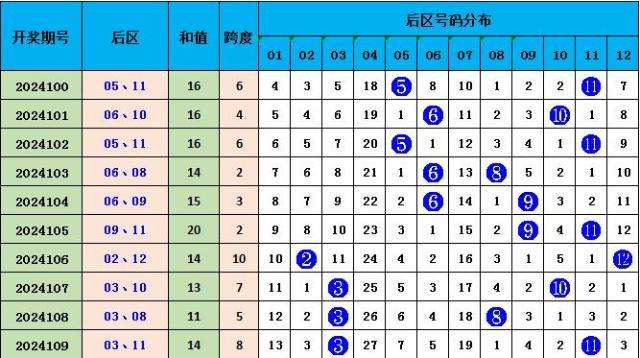 上期后区开出小大组合03 11,近10期大小比11:9,大码出现几率略大,本期预计后区开出小大组合03 07。