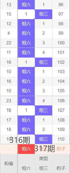 上期形态:组三,近10期的形态分别为:组六,组三,组六,组六,组六,组六,组三,组六,组六,组三,近期组三和组六的形态比较规律性,根据以往形态规律,本期个人认为需要重点关注组六落位,同时也需要防组三形态的开出。